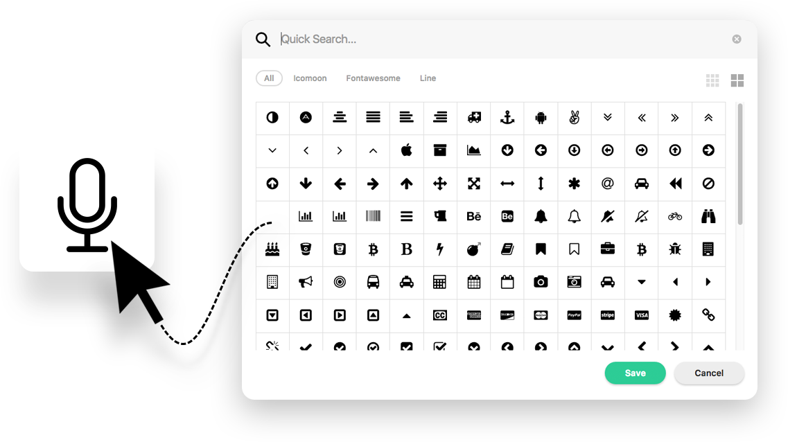 Surf among more than 1600 SVG icons with this lovely icon picker and add the one you like with a simple click of mouse.